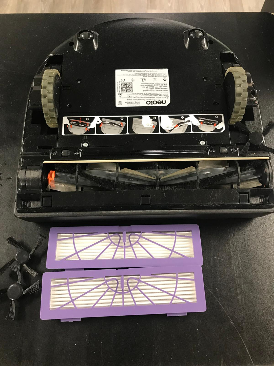- kaksi suodatinta ja kaksi sivuharjaa mukaan